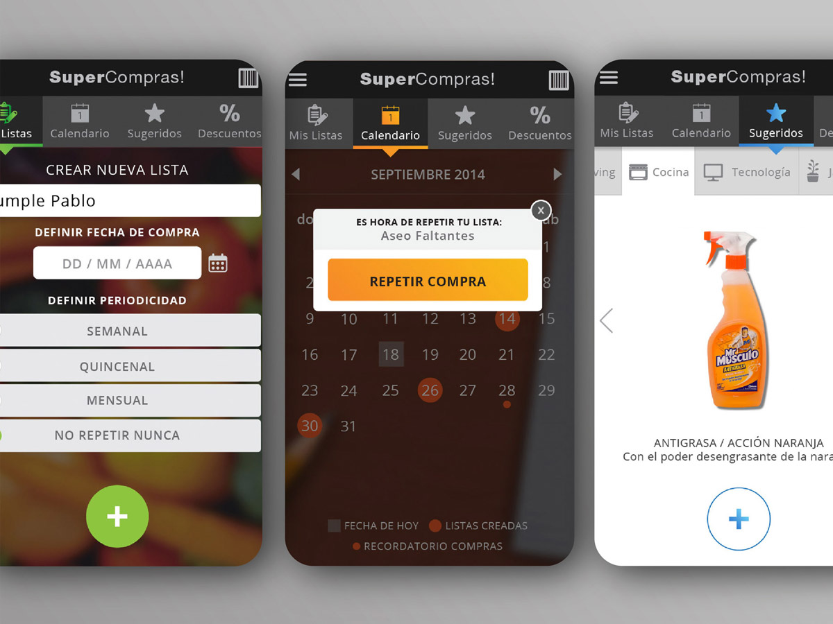 Mobile application to create shopping lists for supermarkets, including calendars, reminders and promotions. Oriented to client brands.